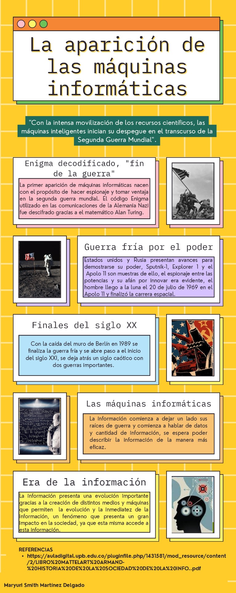 En 1936 Alan Turing matemático e informático, crea un nuevo tipo de máquina que busca resolver cualquier tipo de problema matemático que se representara mediante un algoritmo, lo que hoy en día conocemos como la máquina de Turing y se le reconoce como el padre de la inteligencia artificial. Es así como en 1939 es reclutado por la Intellegent...